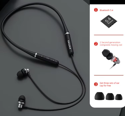 Auricular Bluetooth 5.4 com faixa de pescoço confortável, auricular desportivo com redução de ruído